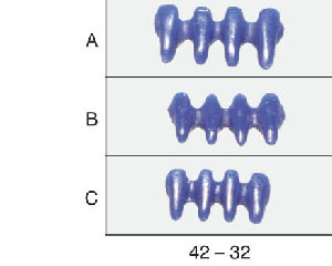 Voskové předtvary konstrukcí pro keramiku - bloků vhodné pro zhotovení jednotlivých litých konstrukcí s možností korektur a přizpůsobení okluzním poměrům antagonistů.