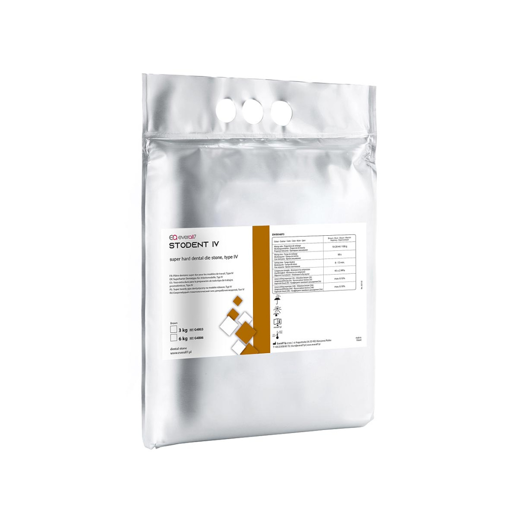 Stodent IV je supertvrdá dentální sádra 4. třídy vhodná pro výrobu pracovních modelů a flexibilních zubních náhrad, kombinovaných prací a postimplantačních náhrad.