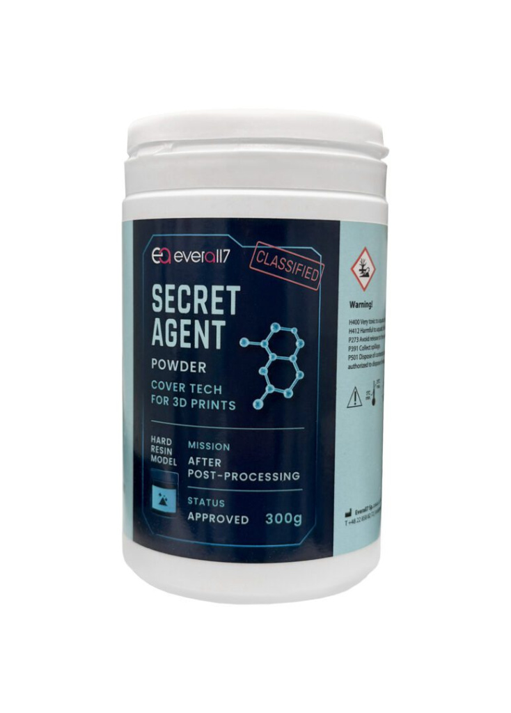 Prášek Secret Agent přichází na řadu přesně tam, kde začínají problémy, které jsou známé každému, kdo pracuje s 3D pryskyřičnými výtisky. Pokud se model ukáže jako příliš měkký, náchylný k poškození nebo na jeho povrchu zůstane tenká, lepkavá vrstva ne zcela vytvrzené pryskyřice, preparát převezme kontrolu nad situací.